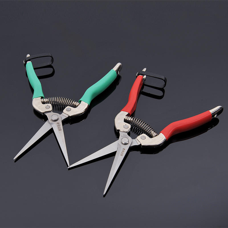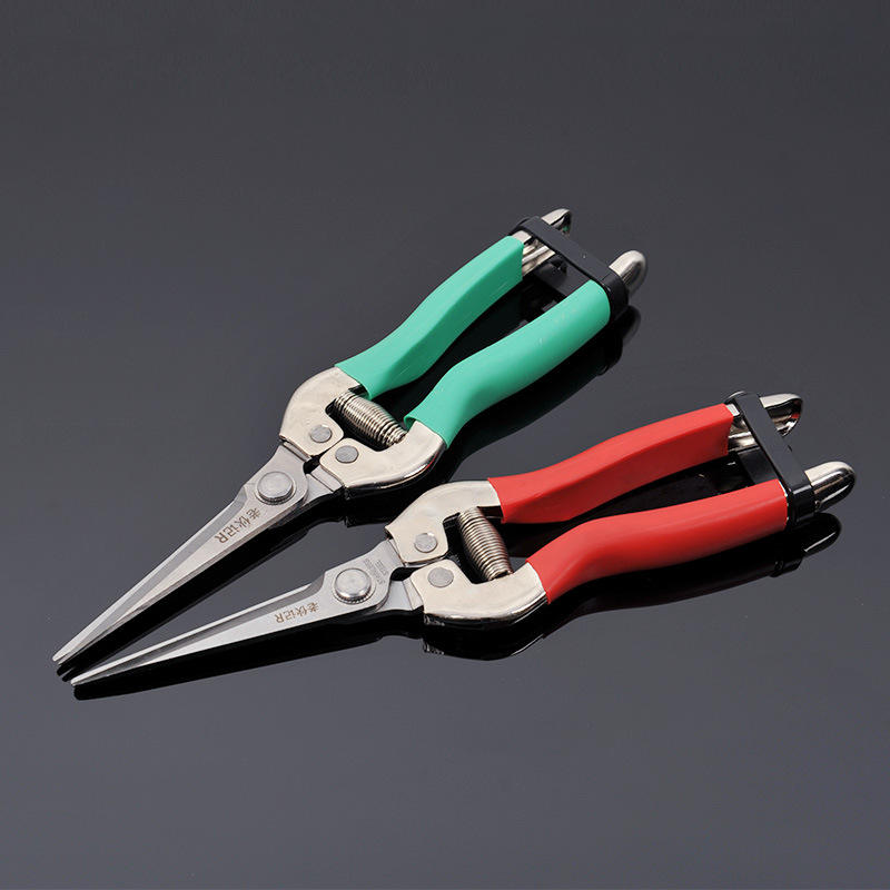กรรไกรตัดแต่งกิ่งไม้สนคู่ ขนาด 85 มม. สแตนเลสสตีล หัวตรง โครงสร้างแบบผีเสื้อ เครื่องมือทำสวนสำหรับเก็บผลไม้และองุ่น