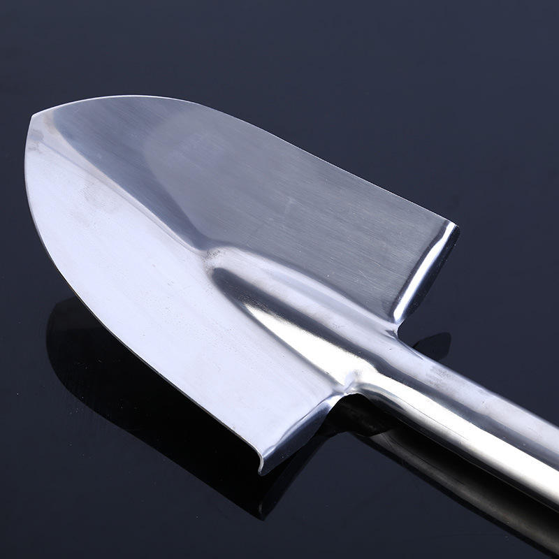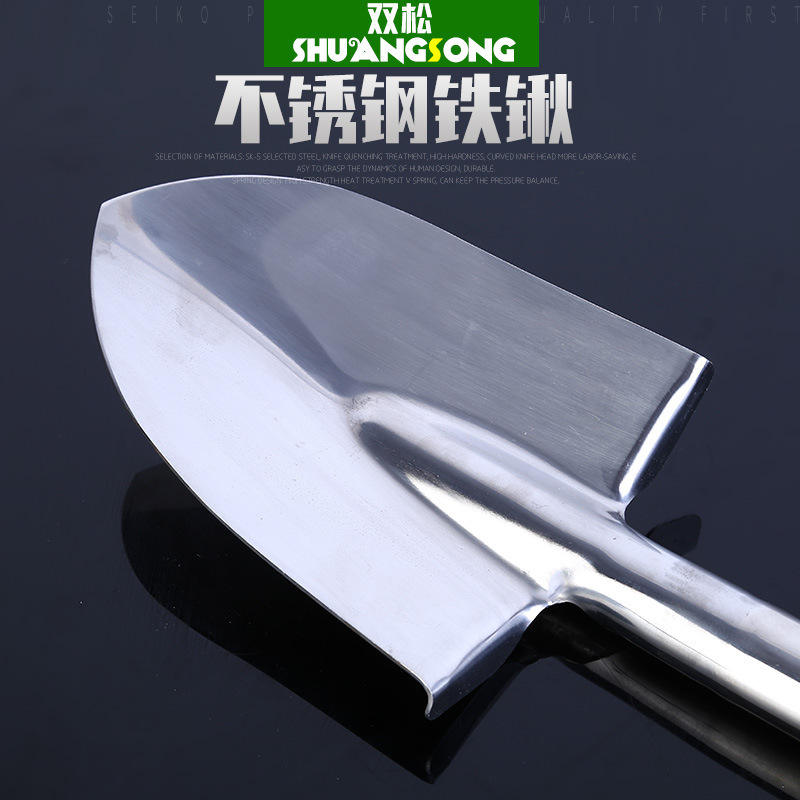 จอบสวนสแตนเลสแบบดับเบิ้ลไพน์ เครื่องมือทำสวนพร้อมใบมีดโลหะและผิวสัมผัสสแตนเลส