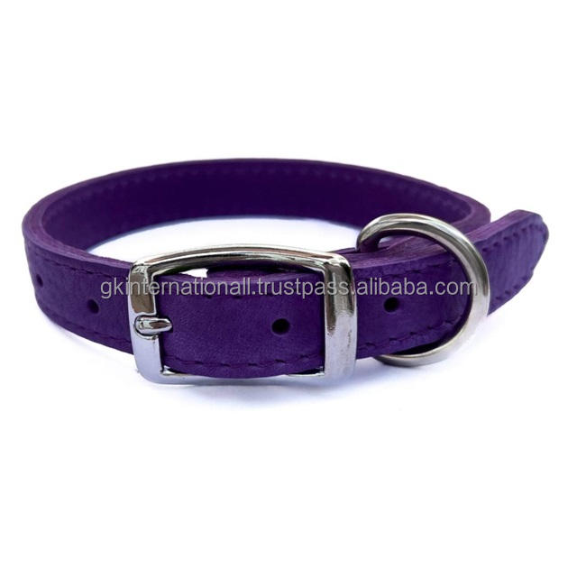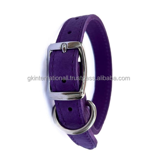 ปลอกคอสุนัขหนังอานหนาสองชั้นเย็บขอบแข็งแรงทนทานหัวเข็มขัดทองเหลืองชุบนิกเกิล