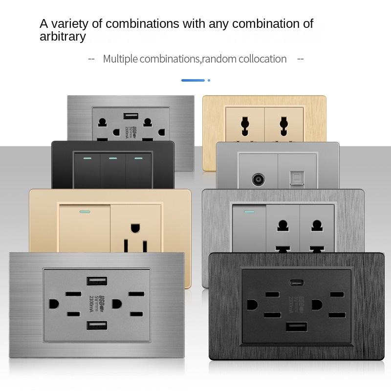 ปลั๊กชาร์จสองพอร์ตพร้อมสวิตช์ไฟบ้านช่องเสียบ USB ด้านนอกสแตนเลสสตีลสวิตช์ติดผนังมาตรฐานซ็อกเก็ตชาร์จเร็ว