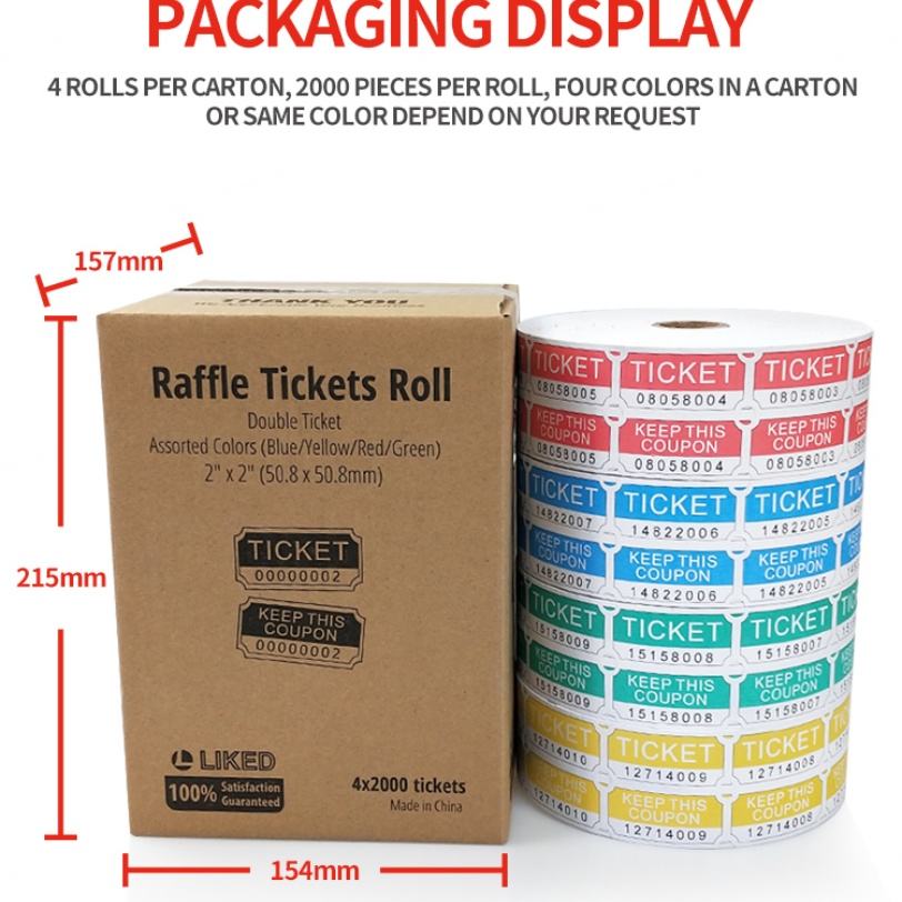 ตั๋วจับรางวัลแบบม้วนคู่ 500/1000/2000 ใบต่อม้วน ตั๋วจับรางวัลแบบกำหนดเอง ขนาด 2''x2''