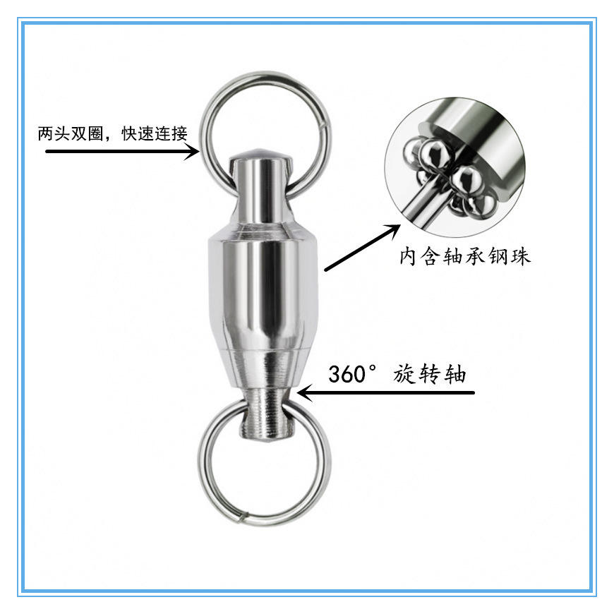 ตัวเชื่อมต่ออุปกรณ์ตกปลาแบบหมุนได้ 360 องศา ทำจากสแตนเลสชุบนิกเกิล พร้อมตลับลูกปืนแบบวงแหวนคู่