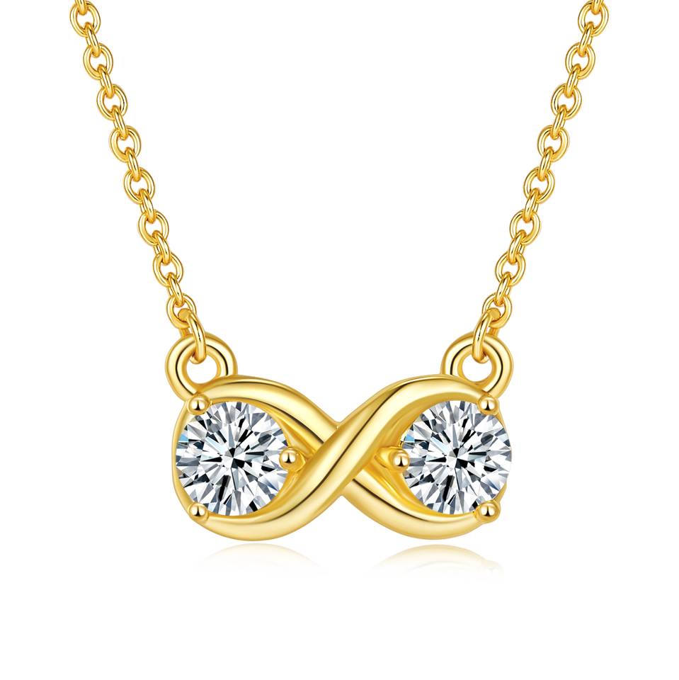 จี้เพชรโมอิสซาไนต์ทรงบริลเลียนต์ เกรด D น้ำหนัก 1.0 กะรัต ตัวเรือนเงินแท้ชุบทอง 14K ดีไซน์วงแหวนคู่ สื่อถึงความรักนิรันดร์สำหรับผู้หญิง