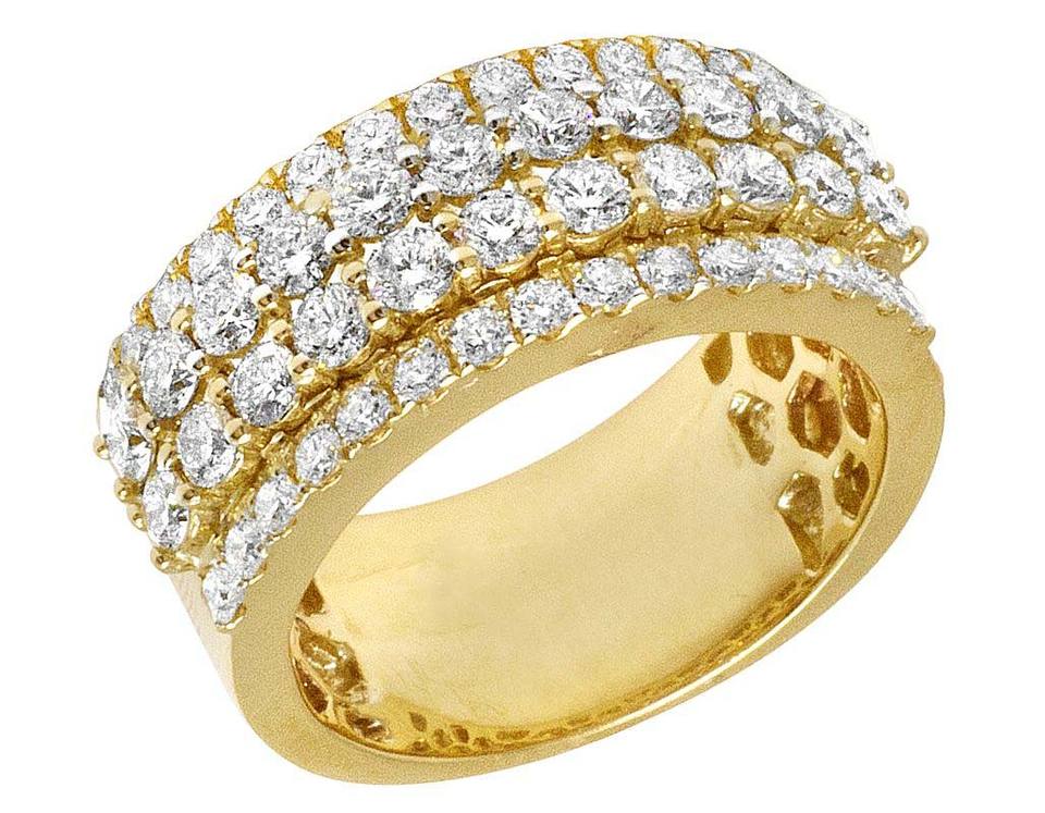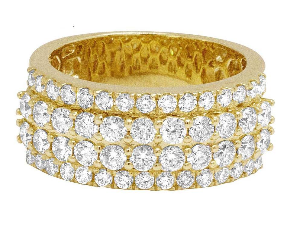 แหวนสองแถวสำหรับผู้ชายแหวนทอง10K สีเหลืองประดับเพชรแนวฮิปฮอปสุดหรู