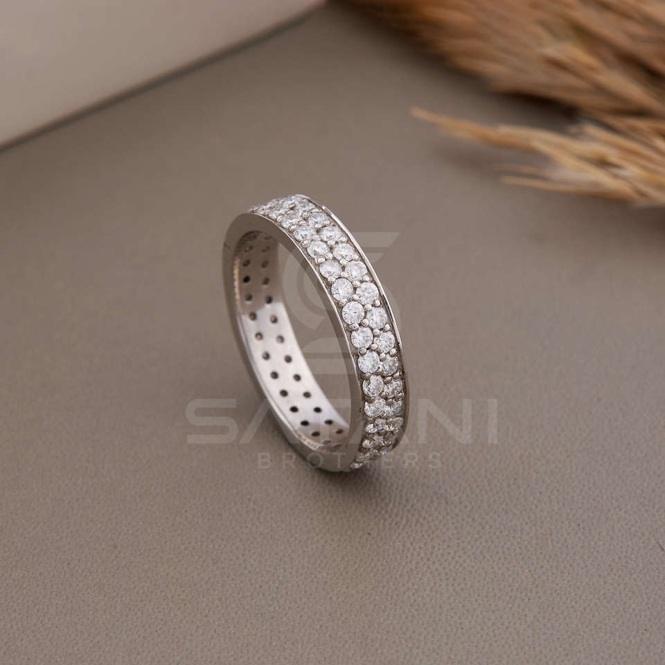 แหวนมอสซาไนต์สองแถวแบบ Eternity Band ระดับ D VVS แหวนแต่งงานแบบซ้อน ออกแบบมาเพื่อความงดงามเหนือกาลเวลา ความสง่างามในทุกๆ วัน และสไตล์ทันสมัย