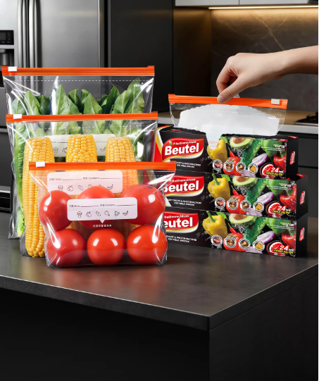 ถุงซิปล็อคใสแบบปิดผนึกสองชั้นสำหรับเก็บอาหาร ป้องกันการรั่วซึม เหมาะสำหรับครัว ตู้แช่แข็ง และขนม