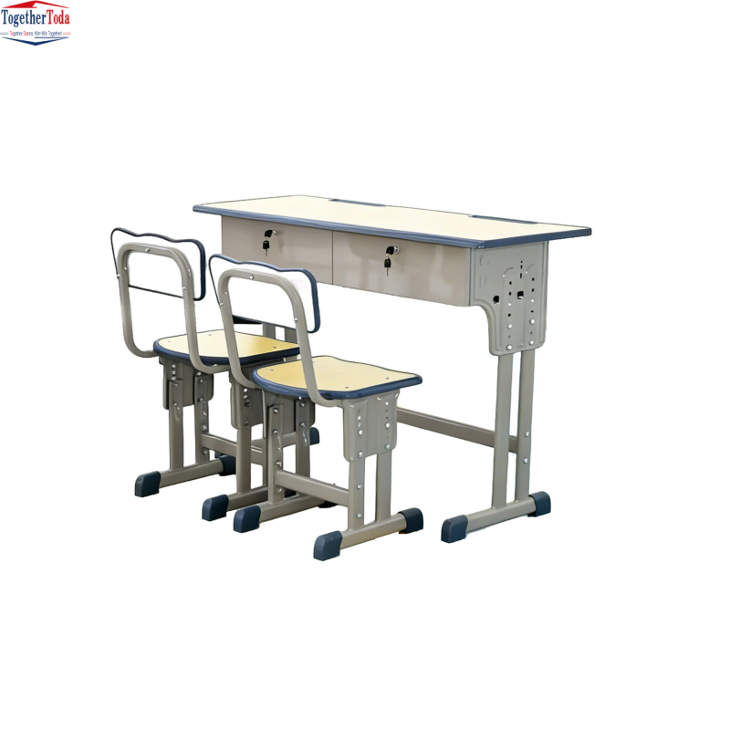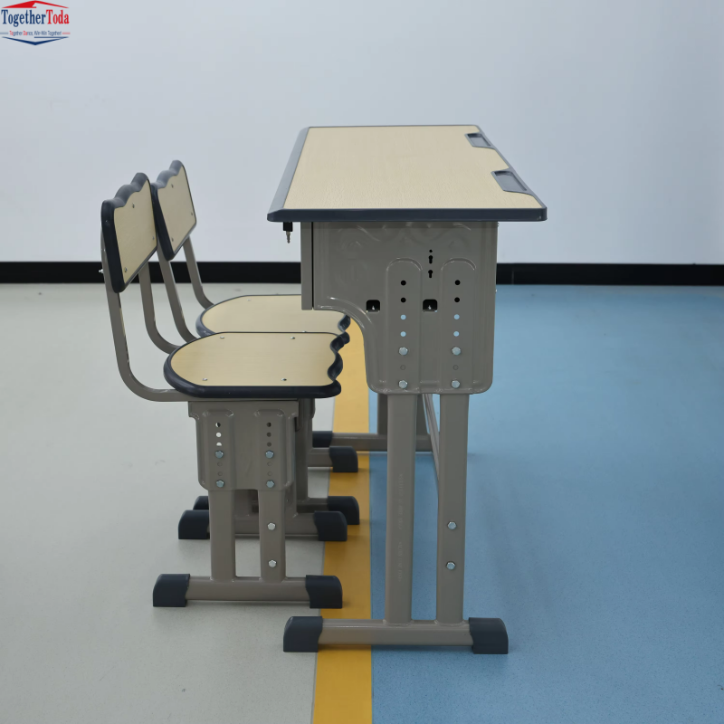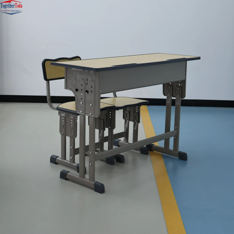 Double Seater Adjustable Height School Desk and Chair Set with Metal Frame for Primary Secondary Classroom Furniture