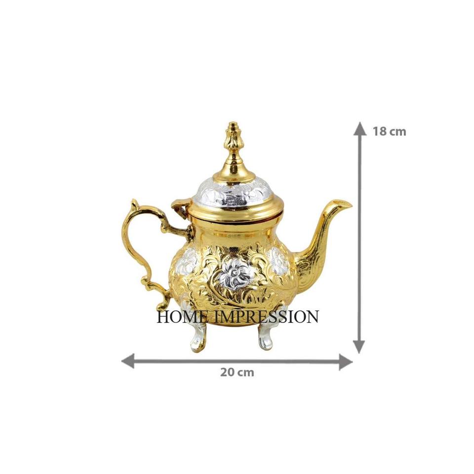 หม้อน้ำชาและกาต้มน้ำทองเหลืองเคลือบเงาแบบคู่สีทองและสีเงินดีไซน์เนอร์