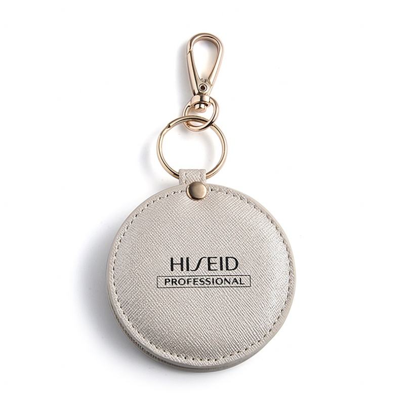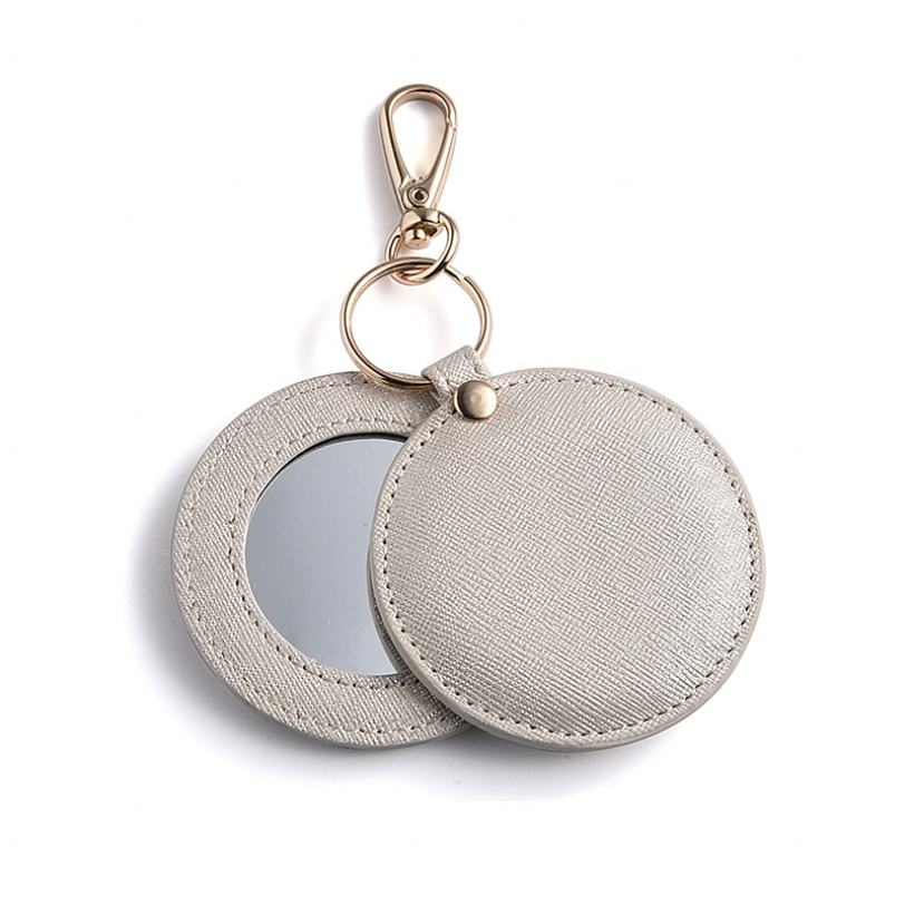 พวงกุญแจกระจกแต่งหน้าแบบพกพาหนัง PU แฟชั่น สกรีนโลโก้ได้สองด้าน