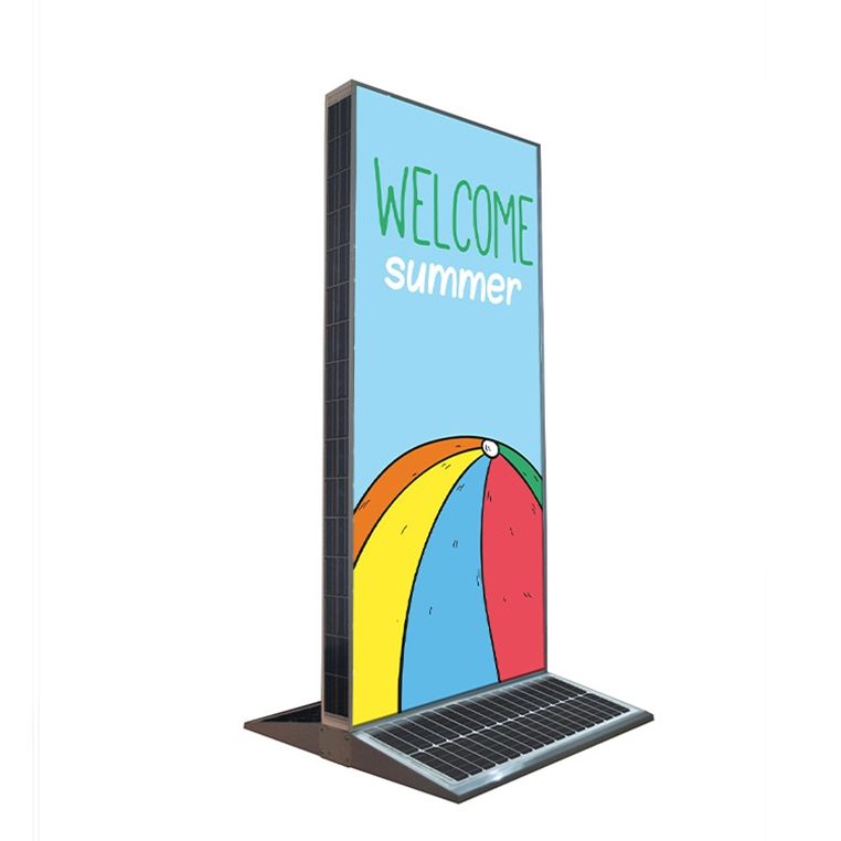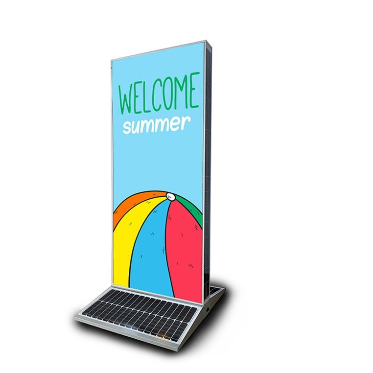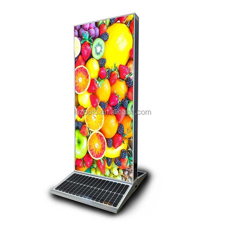 กล่องไฟ LED โฆษณากลางแจ้งแบบชาร์จไฟได้ใหม่สองด้านป้ายพลังงานแสงอาทิตย์กันน้ำ