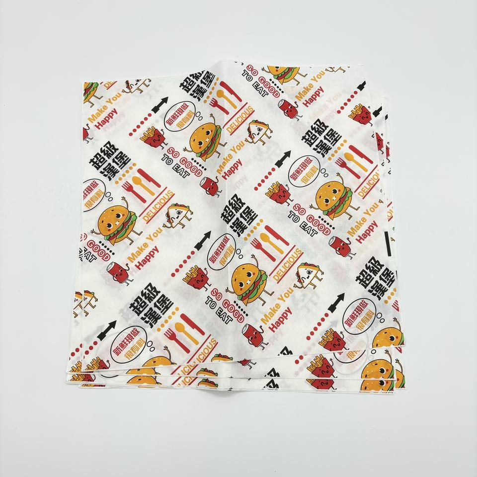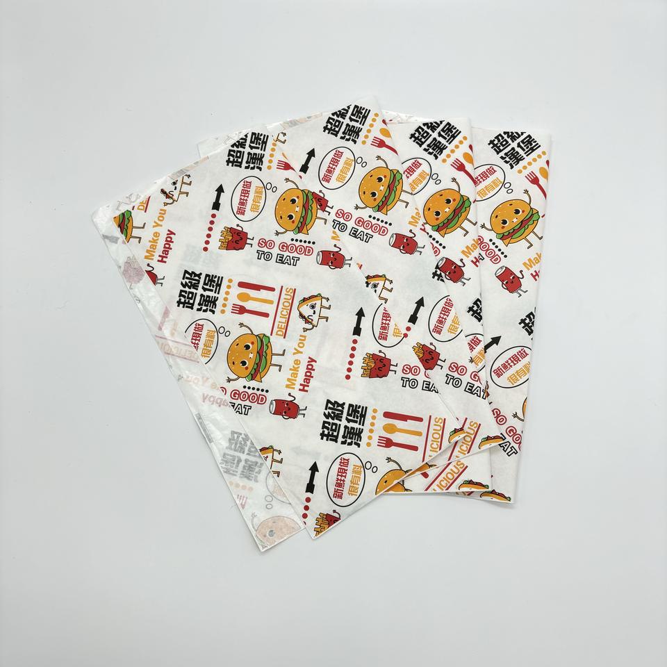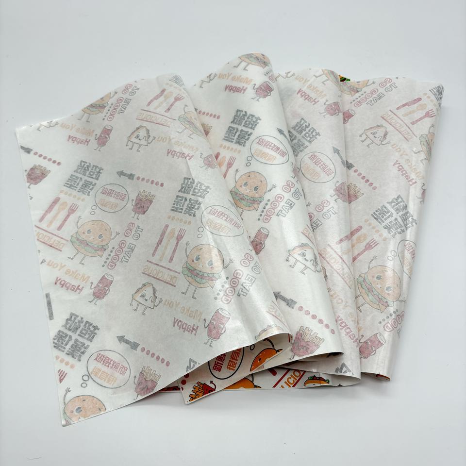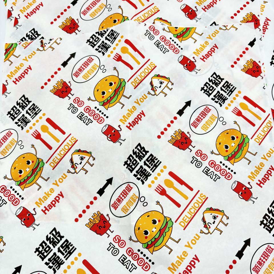 กระดาษห่ออาหารเคลือบไขกันซึมสองด้าน พิมพ์โลโก้ได้ สำหรับแซนวิช เบอร์เกอร์ บะหมี่ และร้านอาหาร