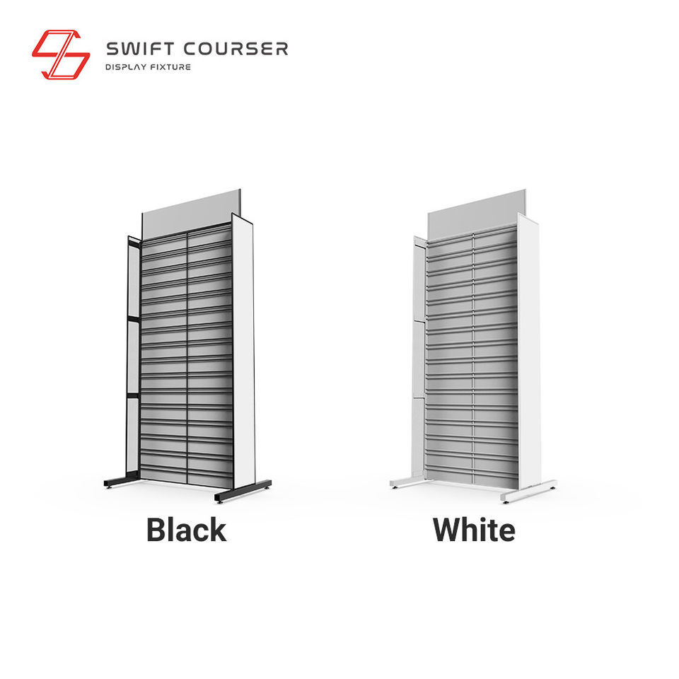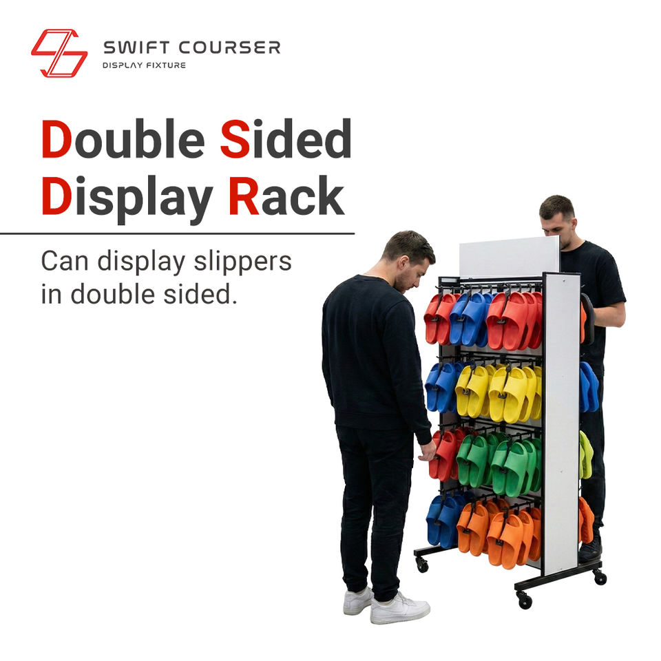 ชั้นวางสินค้าแบบตั้งพื้นโลหะสองด้าน สไตล์อินดัสเทรียล สำหรับร้านค้าปลีก ออกแบบตามสั่ง สำหรับโชว์รองเท้าแตะ