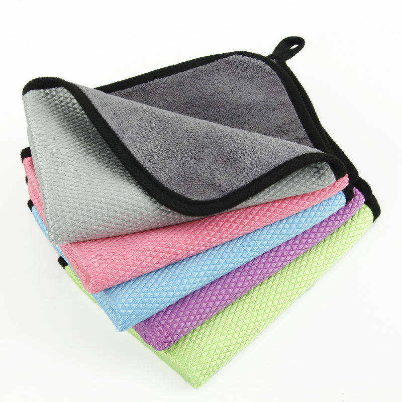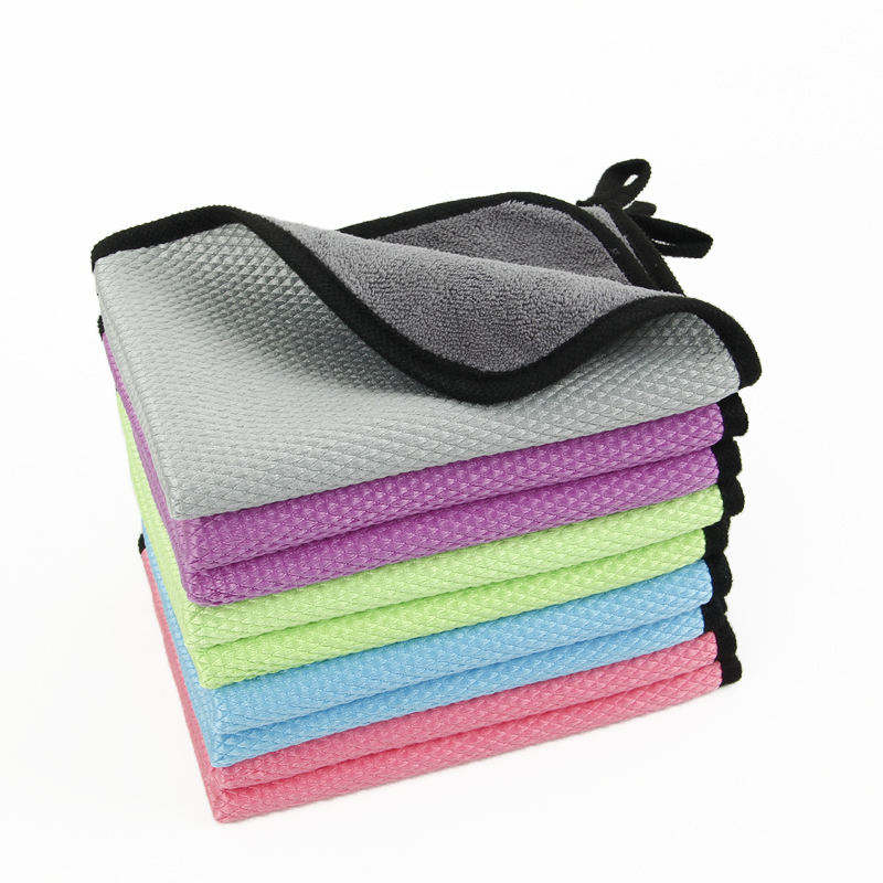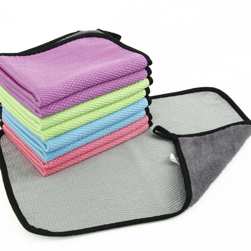 ผ้าเช็ดจานไมโครไฟเบอร์ลายเกล็ดปลา ผ้าขนหนูไมโครไฟเบอร์ ซับน้ำได้ดี ผ้าทำความสะอาดแบบไม่ใช้น้ำมัน ใช้งานได้สองด้าน