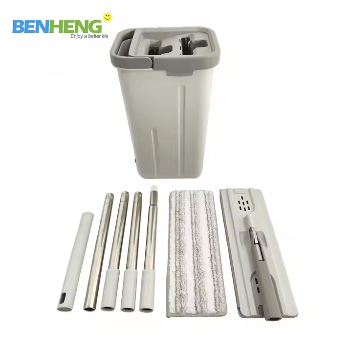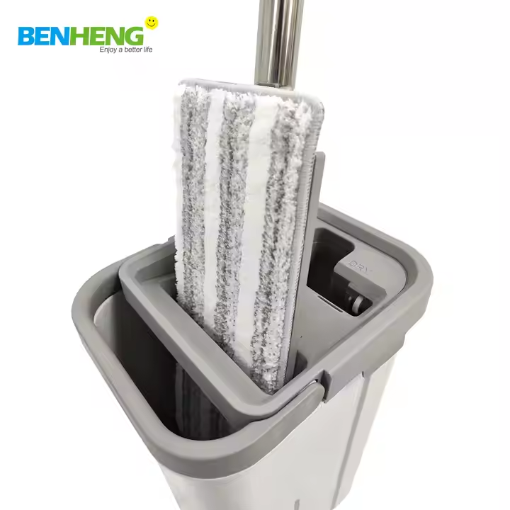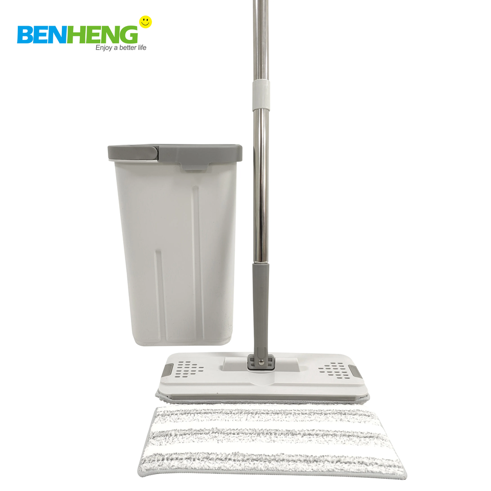ไม้ถูพื้นแบนหมุนได้สองด้านคงที่และ360องศาพร้อมถังซักด้วยตัวเองและบีบให้แห้งด้วยลวดไนลอนภายใน
