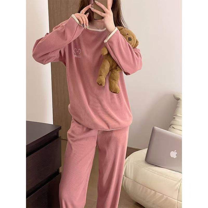 ชุดนอนผ้ากำมะหยี่สไตล์เยอรมันสองด้านสำหรับผู้หญิงขนาดใหญ่สำหรับสาวอ้วน90.00กก. สำหรับฤดูใบไม้ร่วงและฤดูหนาว