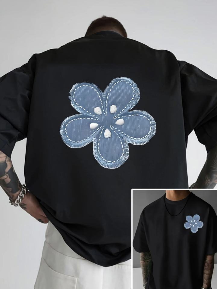 เสื้อยืดพิมพ์ลายสองด้าน คอกลม แขนสั้น ทรงปกติ ปักลาย โอเวอร์ไซส์ ผ้าฝ้าย เสื้อยืดผู้ชาย