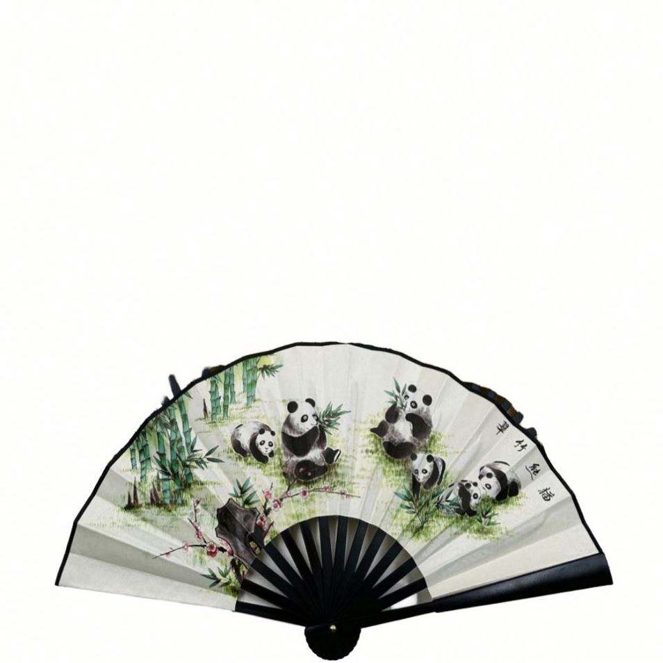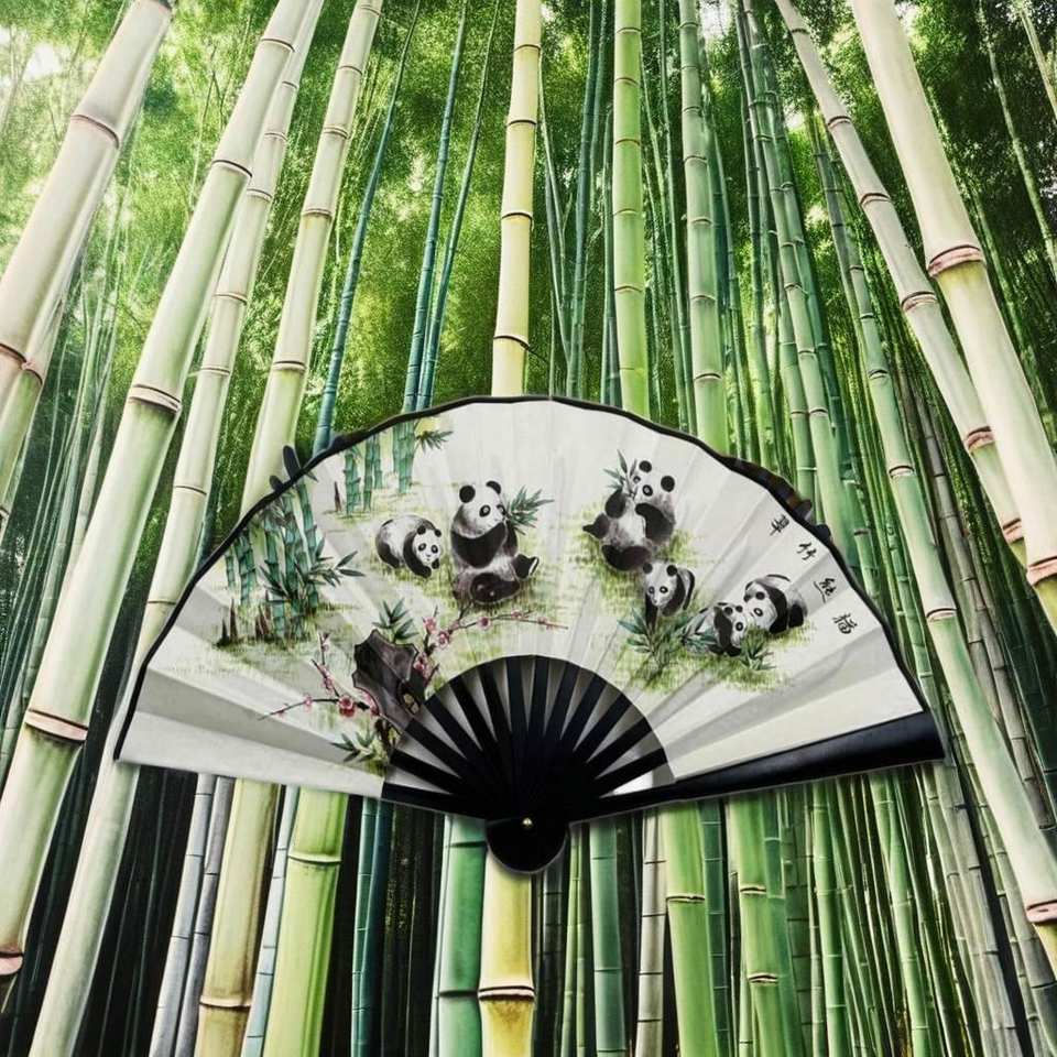 พัดจีนสองด้านลายแกะสลักแพนด้าจากไม้ไผ่ ขนาด 26x42 ซม. ของสะสมงานศิลปะสำหรับตกแต่งบ้านในเทศกาลต่างๆ