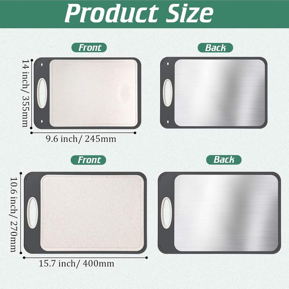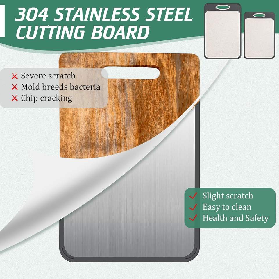 เขียงสแตนเลสสองด้านสำหรับครัว ทำจากสแตนเลสเกรดอาหารและฟางข้าวสาลี ทำความสะอาดง่าย