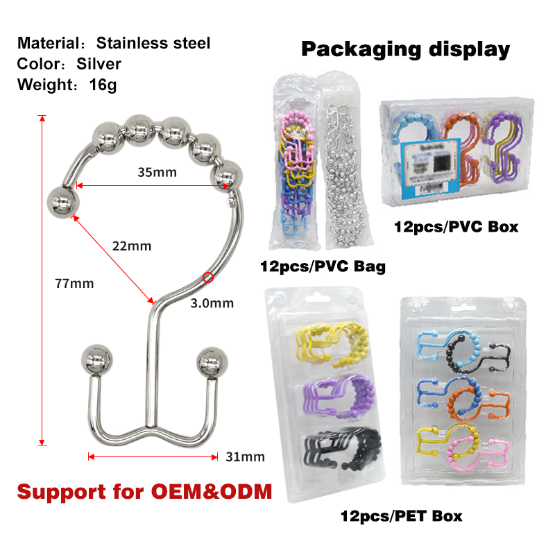 ตะขอแขวนม่านอาบน้ำสแตนเลสสองด้าน แข็งแรง ทนทาน ไม่เป็นสนิม สำหรับห้องน้ำ