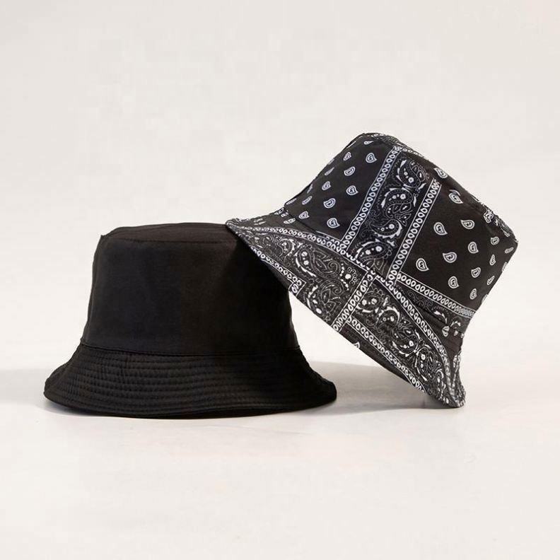 หมวกบักเก็ตสองด้านแบบยูนิเซ็กซ์ ลายดอกแคชเมียร์ ปีกแบนขนาดเล็ก กันแดด ผ้าทวิลย้อมสีแบบไท-ได ลายใบไม้ สามารถสั่งทำสีได้