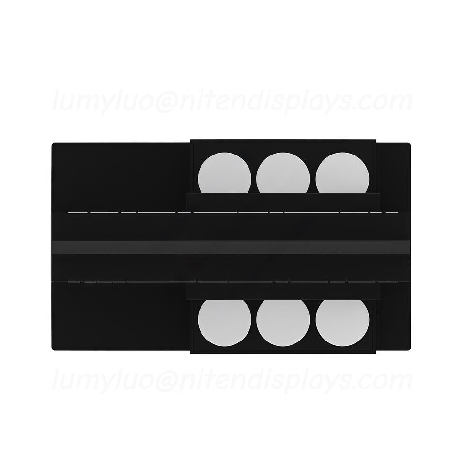 ชั้นวางสินค้าไม้สองด้านสำหรับแสดงสินค้าเครื่องสำอางและโฆษณาของแบรนด์