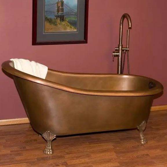 Double Single Slipper Antique Copper Finish Bath Tub Copper Clawfoot Tub Free Standing with Double Single Slipper Antique