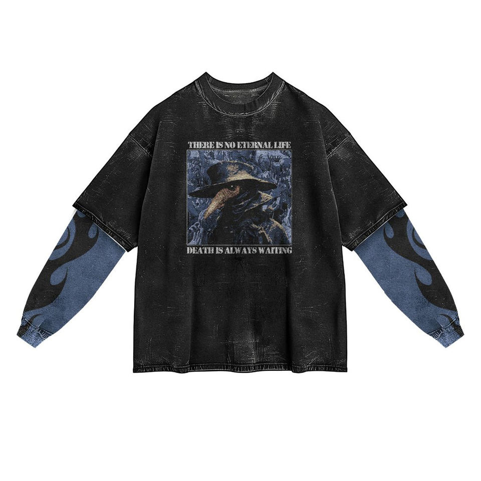 เสื้อยืดคอตตอนแขนสองชั้น แบบเจอร์ซีย์ สั่งทำพิเศษ ล้างสีแบบแอซิด พิมพ์ลายด้วยระบบ DTG เสื้อผู้ชาย แฟชั่น