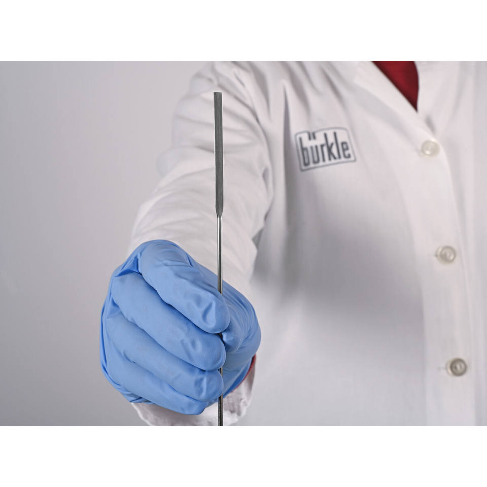 ไม้พายสองด้านแบบแบน สี่เหลี่ยม สแตนเลสสตีล สำหรับใช้ในห้องปฏิบัติการ แม่นยำ ทนทาน ปลายสองด้านเท่ากัน ผลิตในเยอรมนี-Burkle GmbH ผลิตตามสั่ง