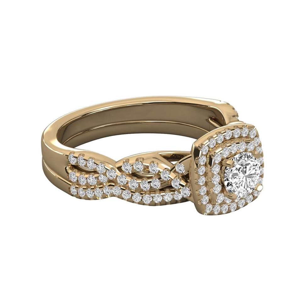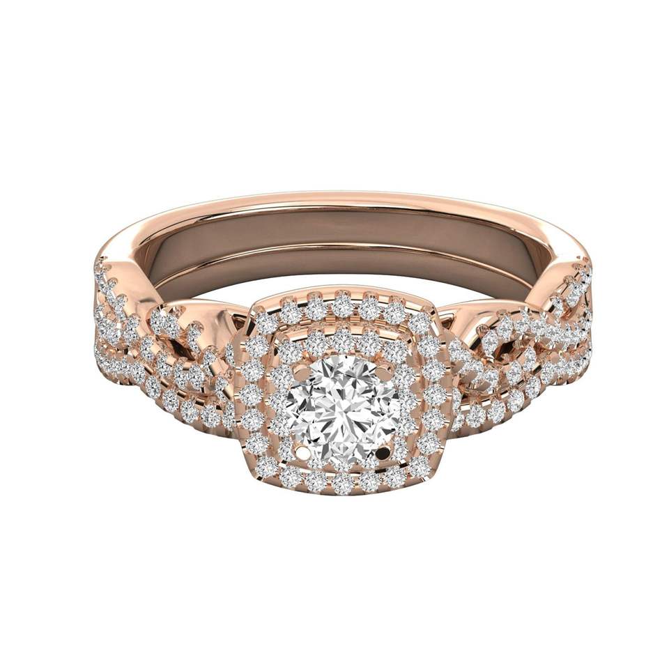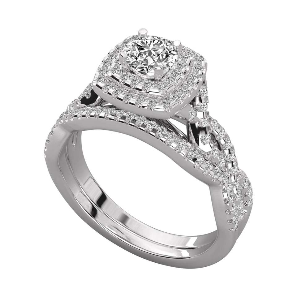 แหวนหมั้นเพชรทรงกลมทรงกลมตัดทรงสี่เหลี่ยมสองชั้น
