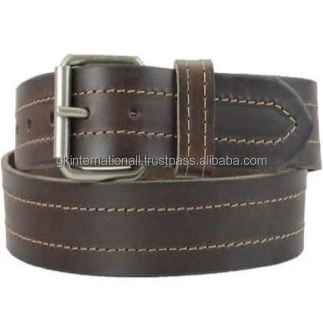 เข็มขัดหนังลำลองสำหรับผู้ชายที่ออกแบบได้เองเย็บสองชั้นหัวเข็มขัดง่ามแบบเดี่ยวทำจากนิกเกิลไม่เป็นสนิม