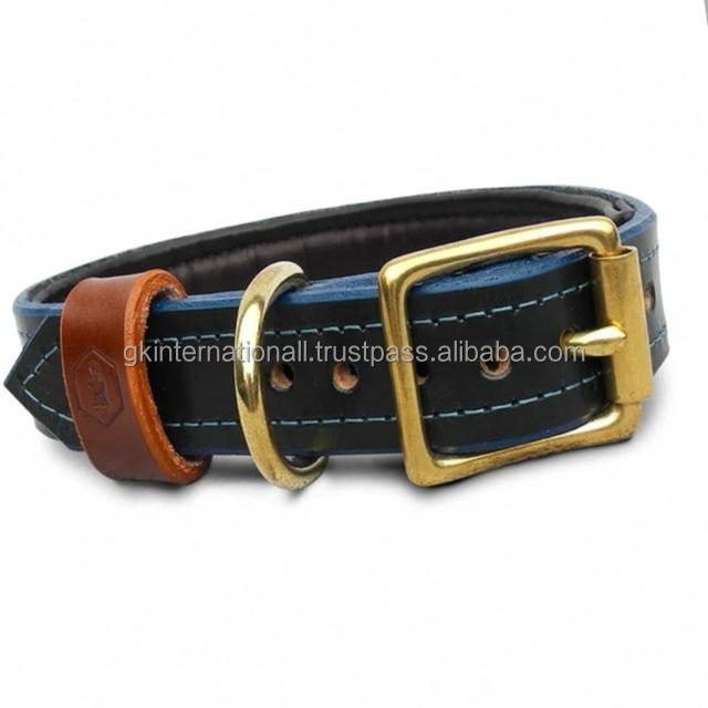 เย็บคู่ที่ทนทานทำด้วยมือเดิมหนังอานปลอกคอสุนัขสำหรับสุนัขทุกขนาดพร้อมหัวเข็มขัดทองเหลืองและแหวนเชื่อม