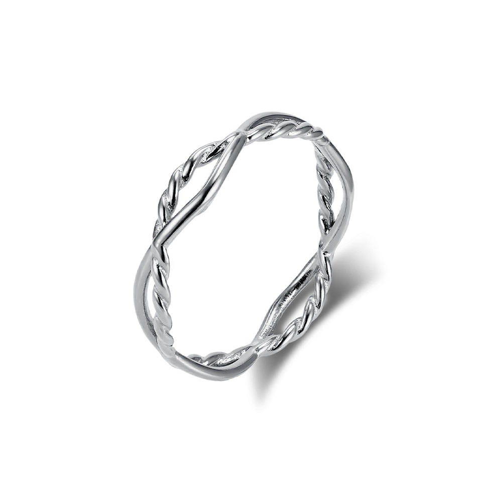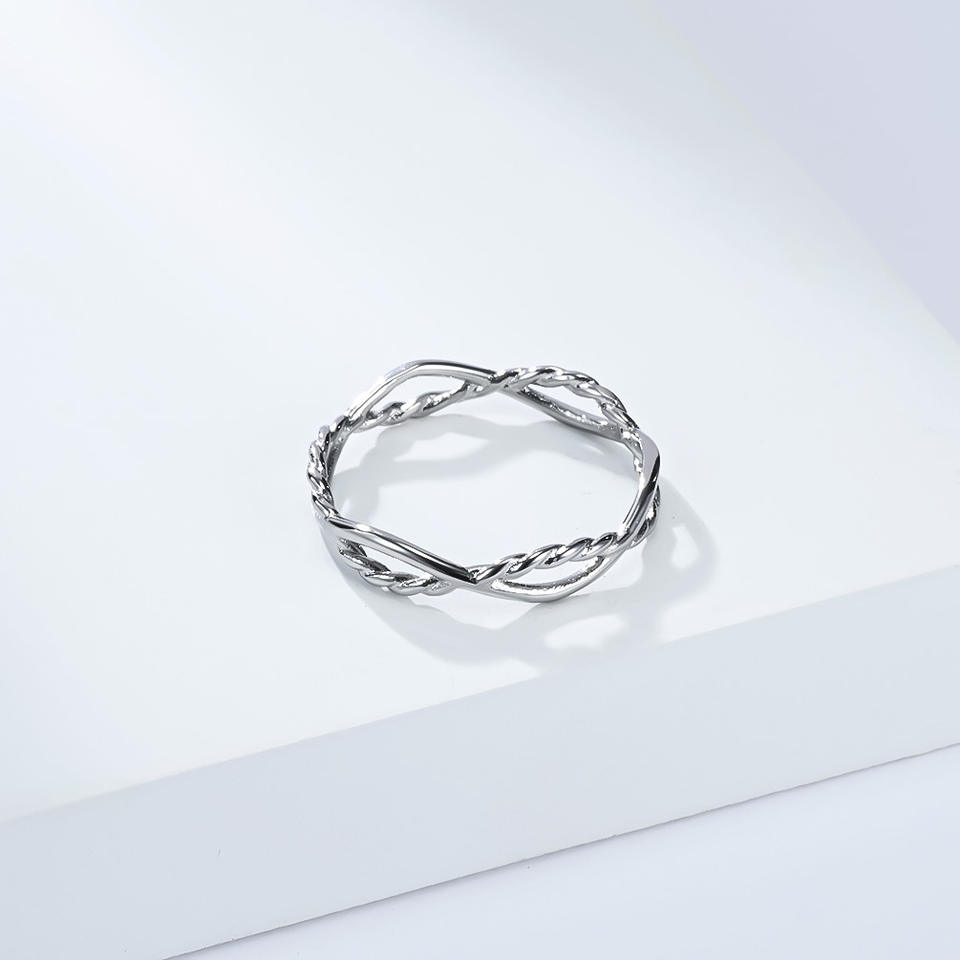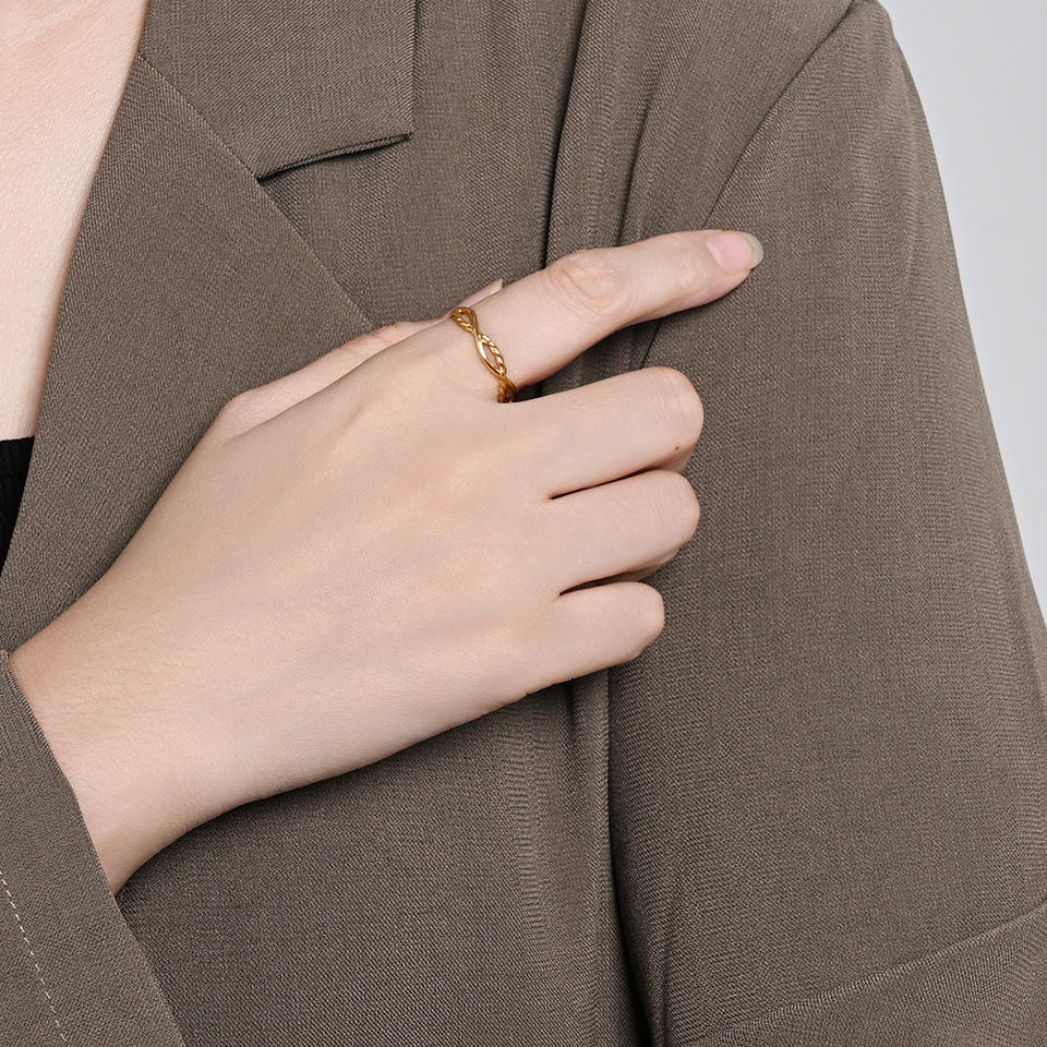 แหวนเหล็กไทเทเนียมถักสองเส้น ดีไซน์เรขาคณิต เครื่องประดับแฟชั่นสำหรับทุกเพศ ของขวัญ สีทอง สีเงิน