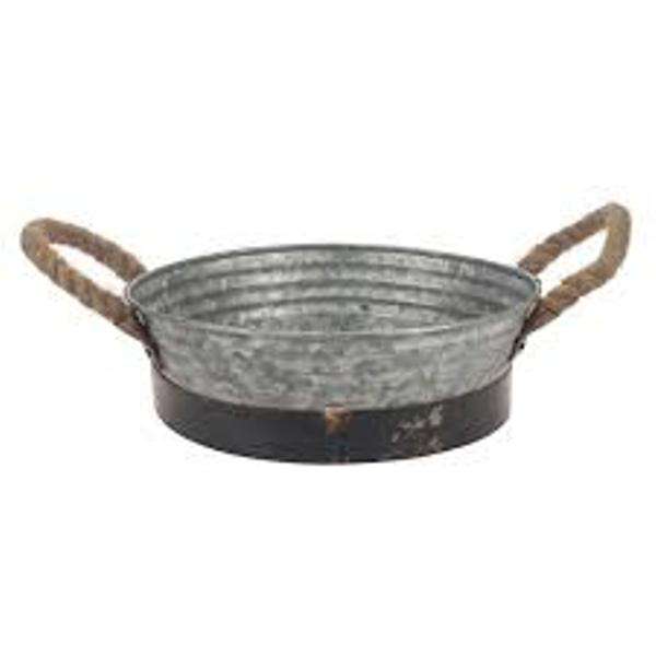 ถาดเสิร์ฟทรงกลมทำจากโลหะชุบสังกะสีแบบชนบทสองชั้นพร้อมการติดตั้งแบบตะขอสำหรับเสิร์ฟอาหารพร้อมที่จับ