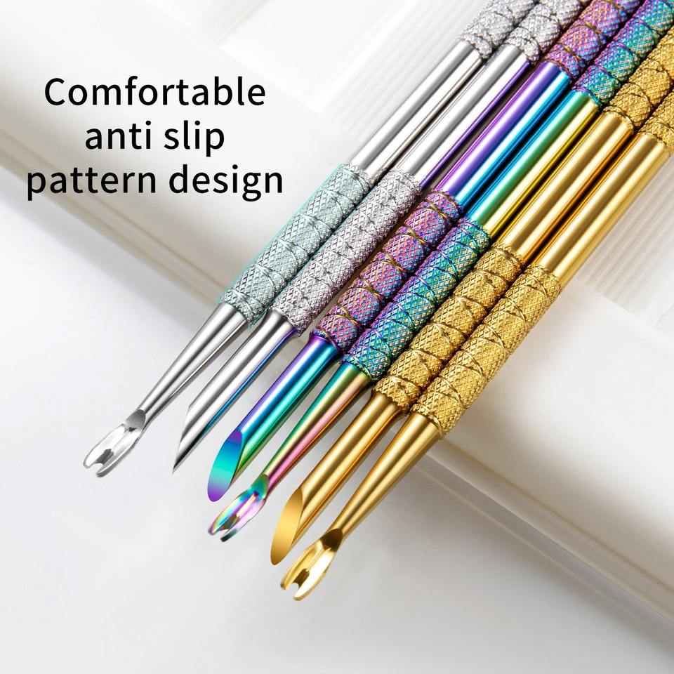 ที่ดันหนังกำพร้าสแตนเลสแบบสองหัว พร้อมหัวเจียรขอบโค้งมน สำหรับขจัดหนังกำพร้าอย่างอ่อนโยน อุปกรณ์ทำเล็บ ดูแลหนังกำพร้า