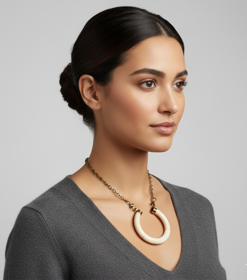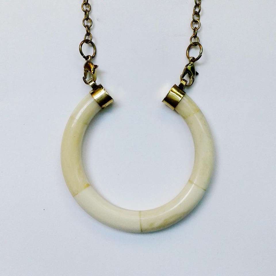 สร้อยคอจี้รูปกระดูกพระจันทร์เสี้ยวคู่ พร้อมสายทองเหลืองโบราณ - เครื่องประดับโบฮีเมียนลายชนเผ่า กระดูกพระจันทร์เสี้ยวคู่ - จี้กระดูก