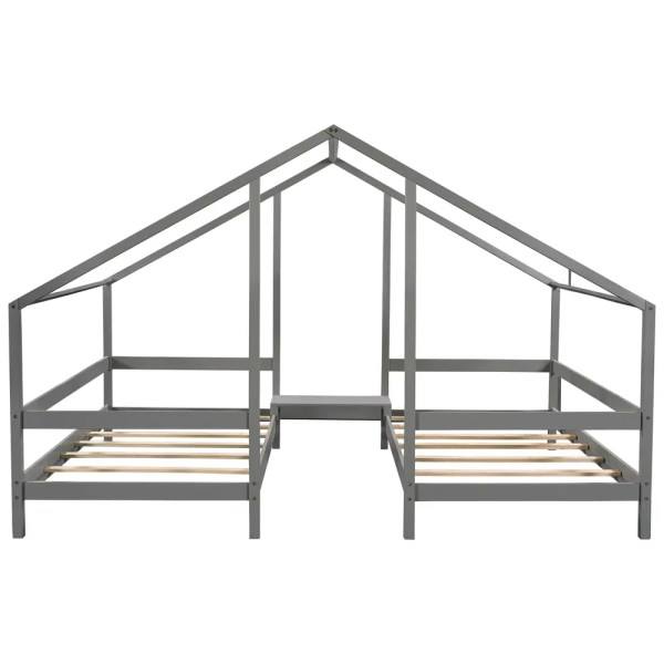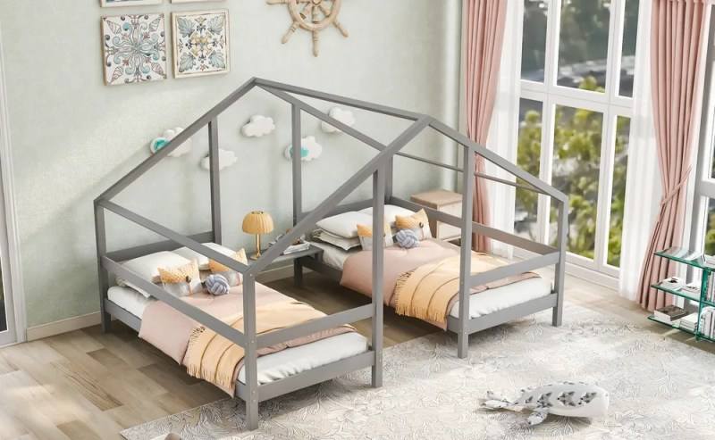 Double Twin Size Triangular House Beds with Built in Table Gray for Kids OEM Supplier From Vietnam Following Your Brand