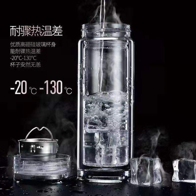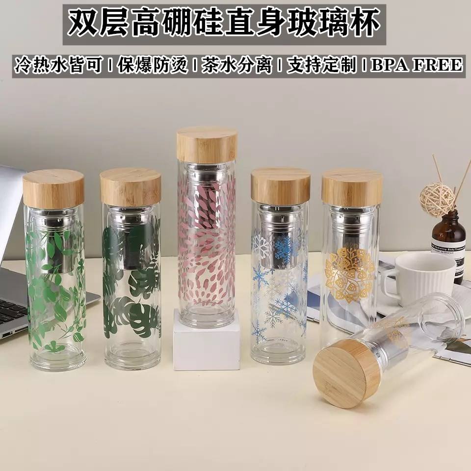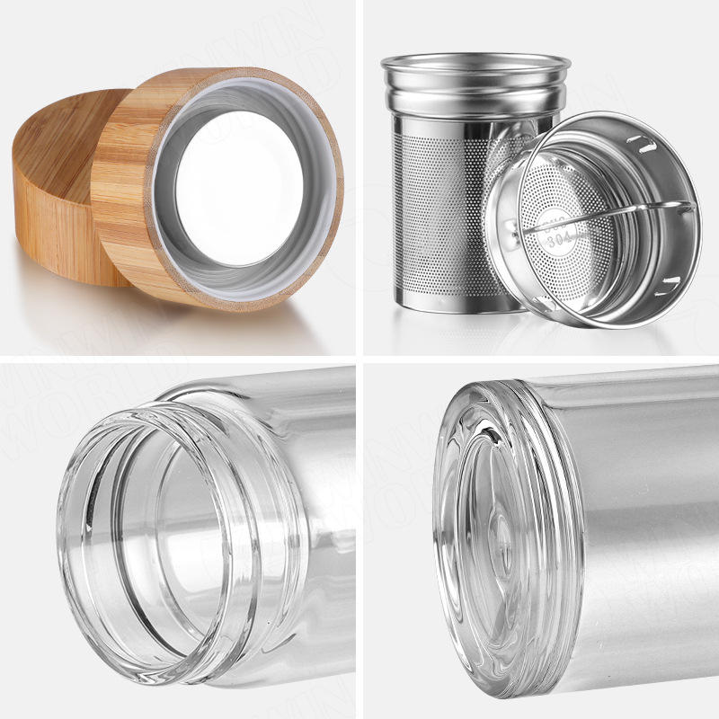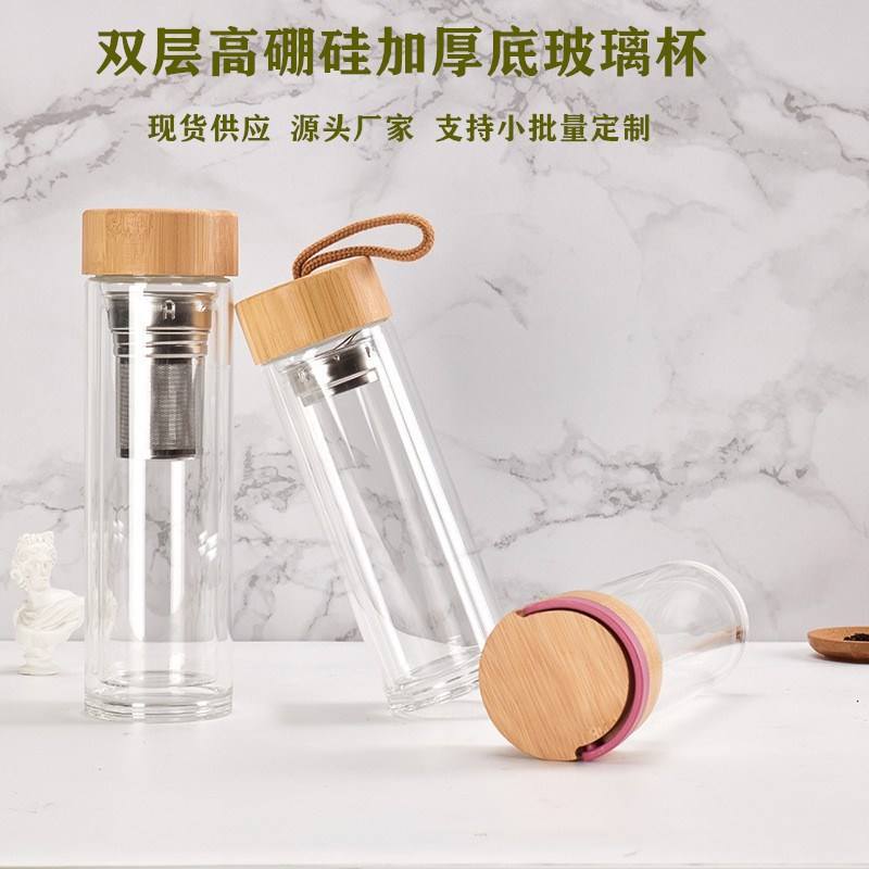 แก้วน้ำชาสองชั้นพร้อมฝาไม้ไผ่ 500 มล. เก็บอุณหภูมิได้ เหมาะสำหรับเป็นของขวัญทางธุรกิจ