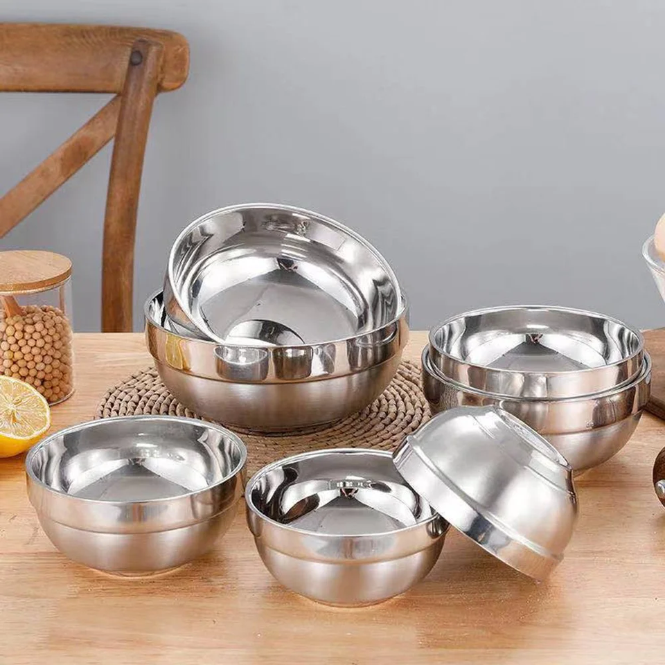 ชามสแตนเลสสองชั้นขัดเงา ทนทาน ดีไซน์เก็บความร้อน/เย็น สำหรับอาหารร้อน/เย็น ใช้ได้ทั้งมืออาชีพและใช้ในบ้าน