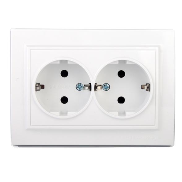 เต้ารับไฟฟ้าติดผนังแบบฝัง ดับเบิ้ลไวท์ 16A 220V IP22 พร้อมสายดิน วัสดุเทอร์โมพลาสติก/ทองแดง มาตรฐาน EU UK