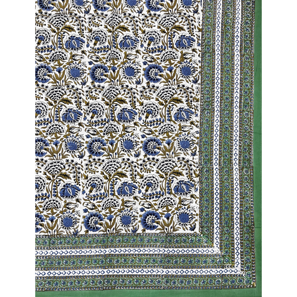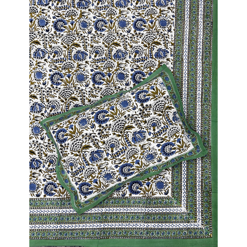 ผ้าปูที่นอนลายเรขาคณิตสีขาวเขียวพิมพ์ลายด้วยมือแบบดับเบิ้ลไวท์กรีน แจล ผ้าฝ้าย 200 เส้นด้าย ระบายอากาศได้ดี เหมาะสำหรับใช้ในบ้าน โรงแรม และงานตกแต่ง