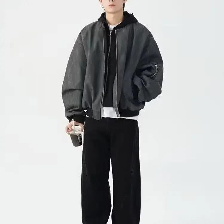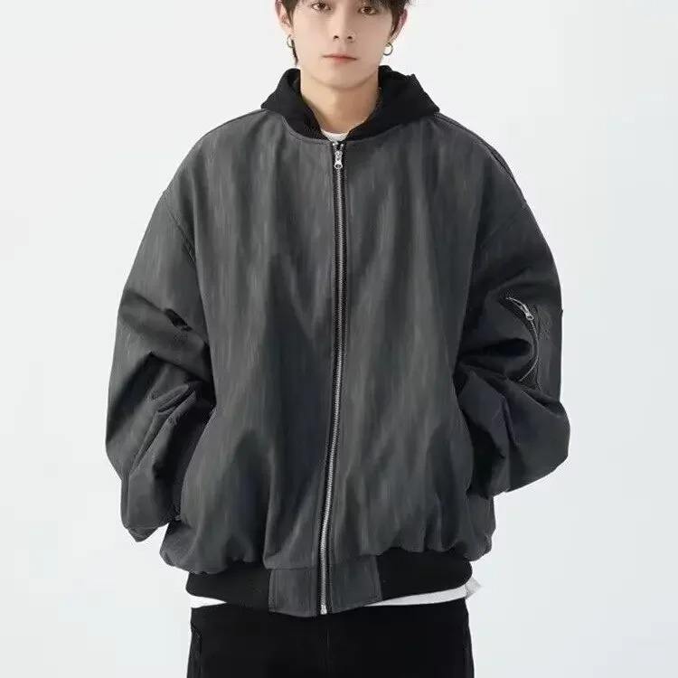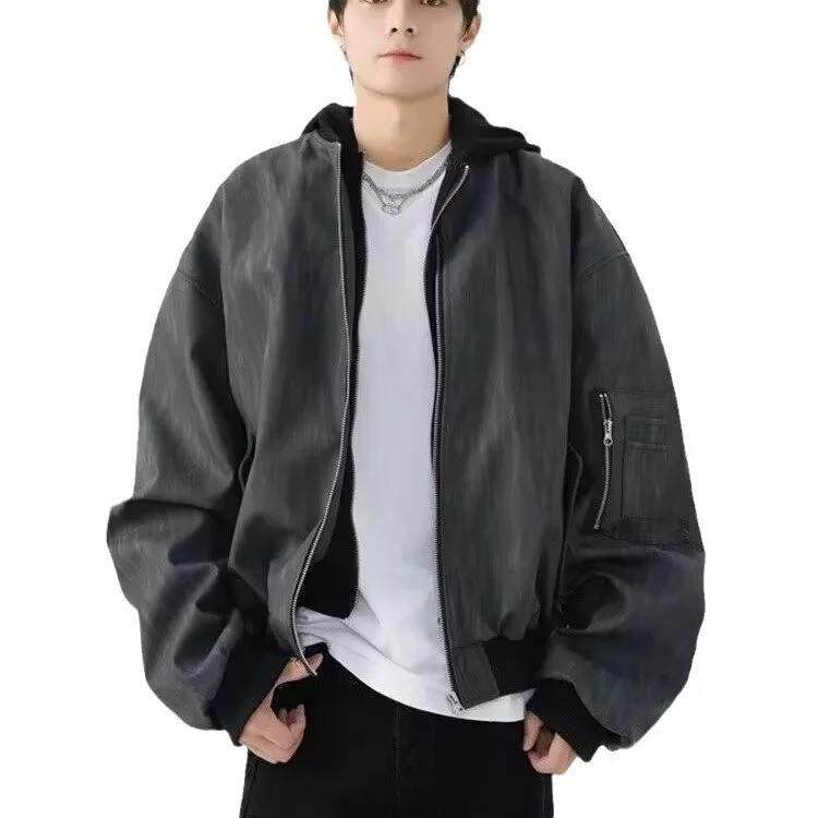 แจ็กเก็ตหนังซิปคู่มีฮู้ด, แจ็คเก็ตหนังแบบหลวมมีกระเป๋าใช้งานได้สำหรับฤดูใบไม้ร่วง/ฤดูหนาว