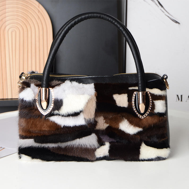 กระเป๋าผู้หญิงขนมิงค์แบบลำลองมีซิปคู่