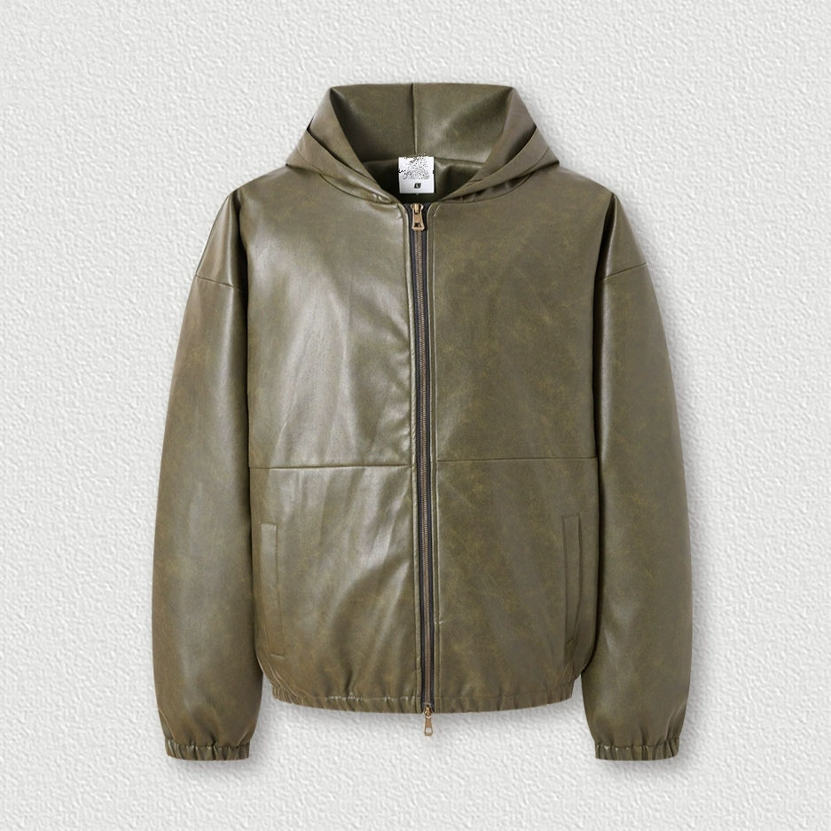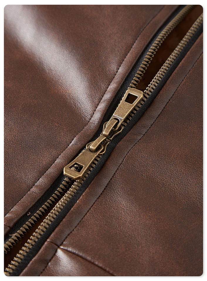 เสื้อโค้ทลำลองแบบซิปคู่ หนา 100% โพลีเอสเตอร์ แจ็คเก็ตหนังทรงหลวม หนัก คุณภาพสูง