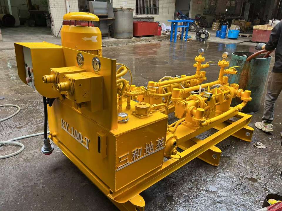 ปั๊มฉีดปูนซิงโครนัสแบบสองทาง ขับเคลื่อนด้วยมอเตอร์คู่ (มอเตอร์ผสม 12 แรงม้า มอเตอร์เก็บปูน 5.5 แรงม้า) 18 ล/ชม. 100 ม.