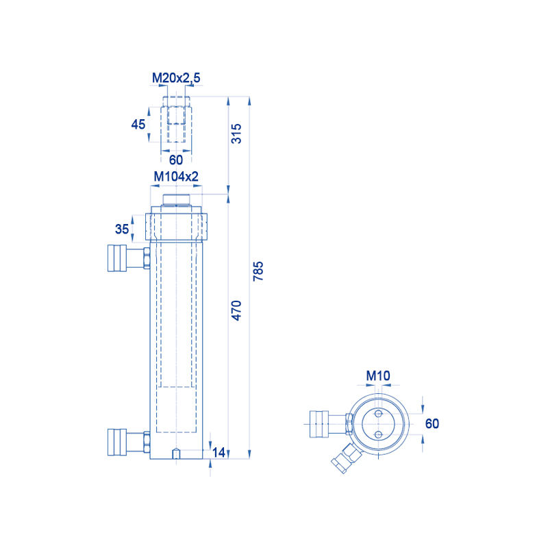 กระบอกไฮดรอลิกแบบ double-acting h.785mm omcn 369 /e 35ton กันรุนดึง15ton
