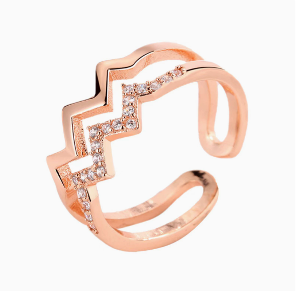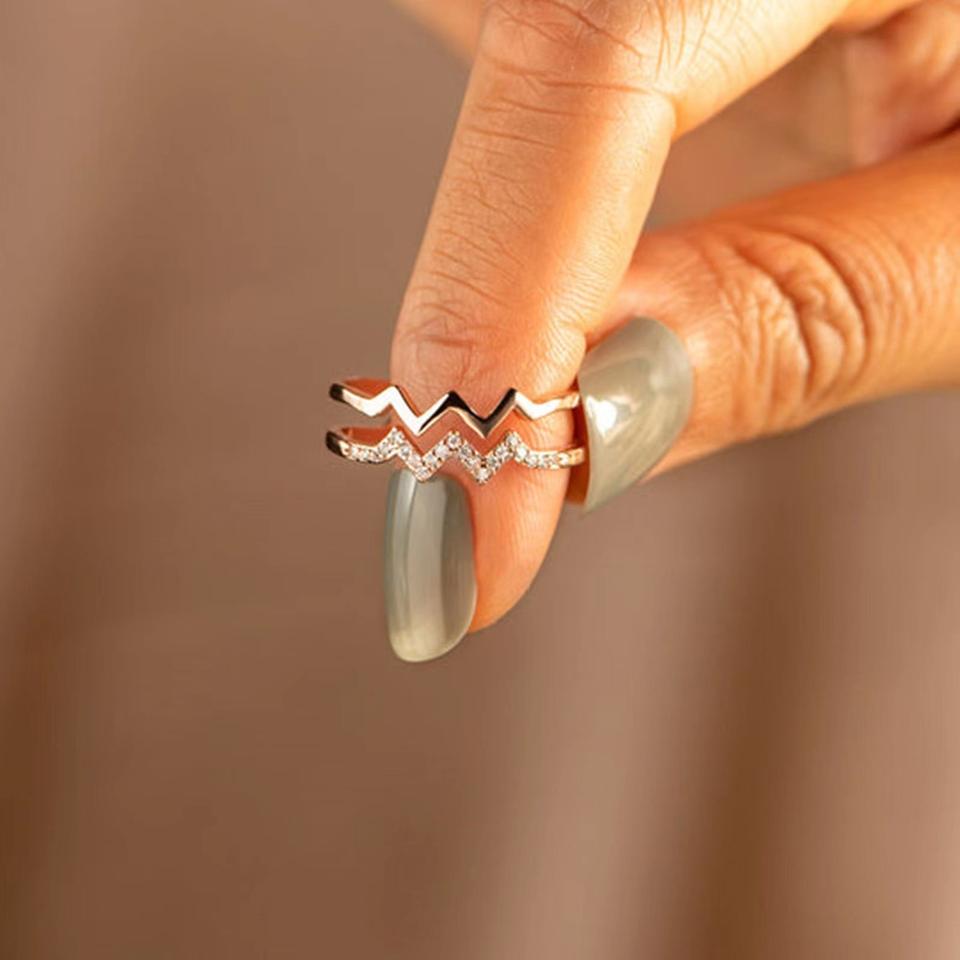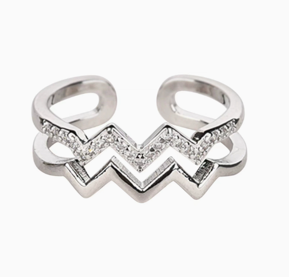 แหวนชุบเงินลายคลื่นรูปหัวใจสองชั้นสำหรับผู้หญิง ดีไซน์เปิดเรียบง่าย อเนกประสงค์ ทันสมัย เหมาะสำหรับผู้หญิง