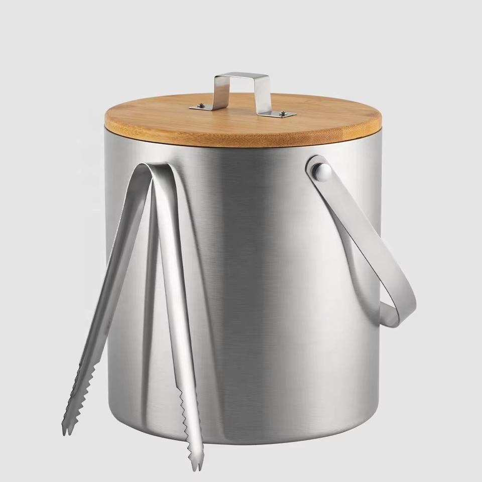 ถังน้ำแข็งแชมเปญโลหะสองชั้นช่วยให้ฟองแชมเปญเย็นลงอย่างสมบูรณ์แบบเป็นเวลานาน รักษาความสง่างามและอุณหภูมิได้อย่างดี