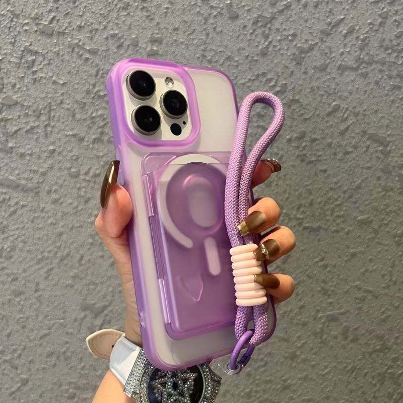 เคสโทรศัพท์แบบใสสองด้านสีลูกกวาดพร้อมช่องใส่บัตร เหมาะสำหรับ iPhone 14 15 16 Pro Max แบบสองด้าน