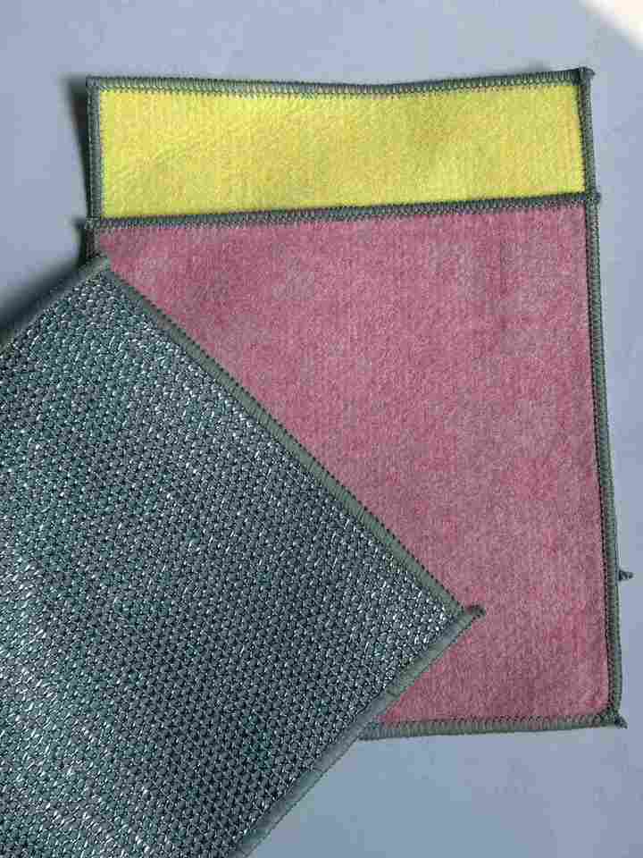 ผ้าล้างจานลวดสีเงินสองด้านกันน้ำมันและหม้อ-ปลอดภัยลวดเหล็กหนาดูดซับเปลือกมะพร้าวผ้าทำความสะอาด