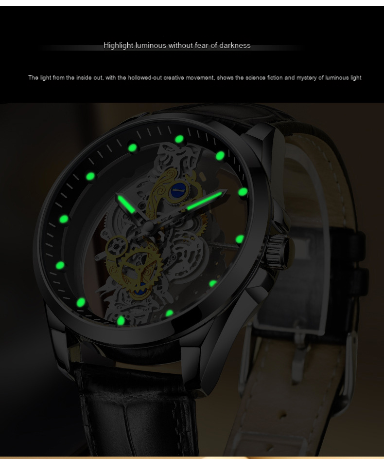 นาฬิกากลไกอัตโนมัติแบบกลวงใสสองด้านสำหรับผู้ชายกันน้ำเรืองแสงควอตซ์แบบใหม่